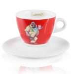 Ceașca clasică pentru cafea espresso cu logo-ul clasic Lucaffé și farfurie albă. Bucurați-vă de un cappuccino potrivit de cald mai mult timp, datorită peretelui foarte gros al ceștii.