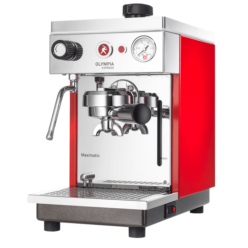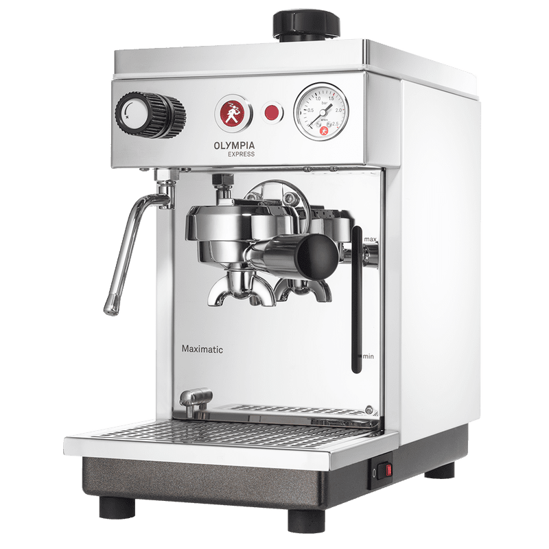 Olympia Express Maximatic este partenerul potrivit pentru oricine caută un pic mai mult confort. Espressorul electric semiautomat cu pompă cu vibrații cu amortizor este atât de comod de manevrat și de mic încât aproape că încape pe o foaie A4. Acest lucru este posibil datorită fabricării individuale a tuturor componentelor tehnice, de la pompa cu vibrații cu amortizor până la boiler. Iar acest lucru face ca Olympia Express Maximatic să fie cel mai mic aparat cu circuit dublu din lume.