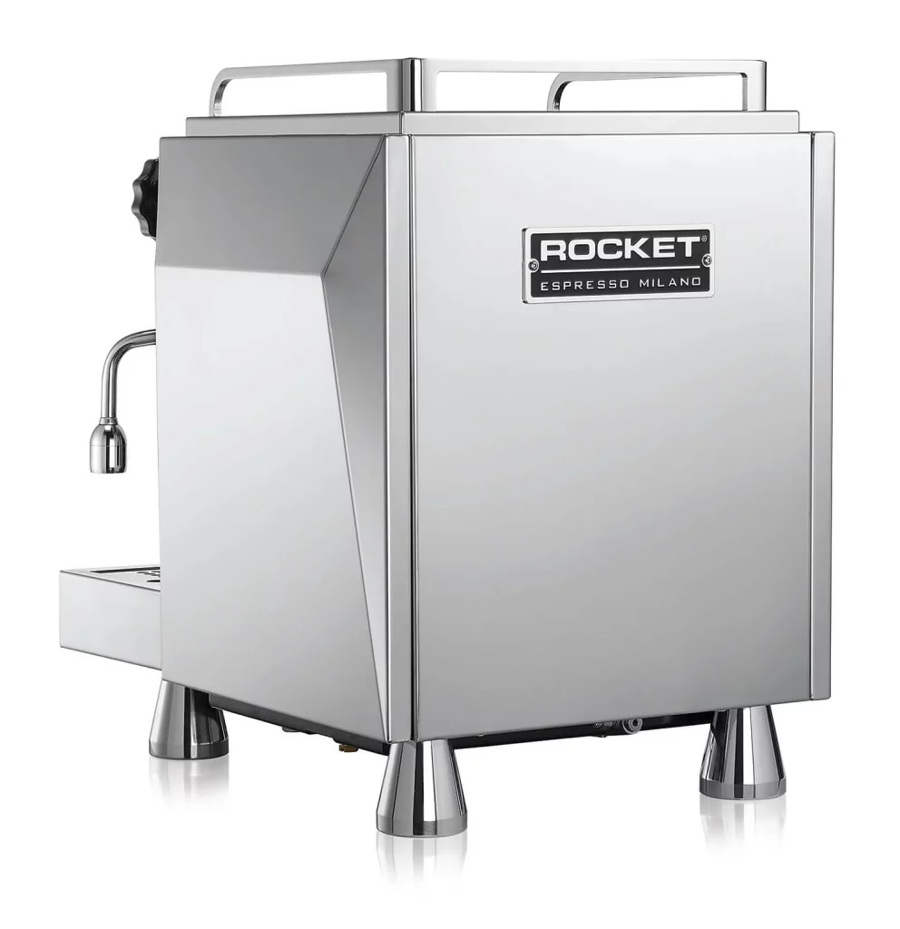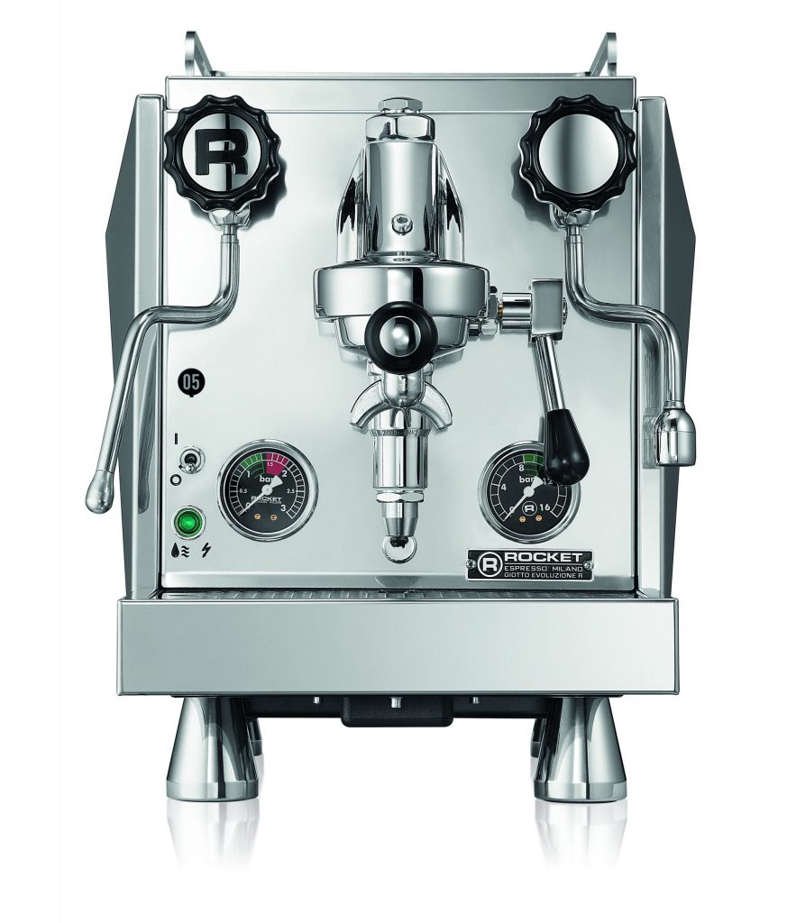 Rocket Giotto Cronometro R + Shot Timer este noua versiune a aparatului deja performant Milano Mozzafiato de la Rocket. La fel ca predecesorul său, și acesta este dotat cu legendarul grup de preparare Faema E61 și are la bază sistemul de distribuție a apei cu circuit dublu care permite obținerea simultană a cafelei espresso și a spumei.